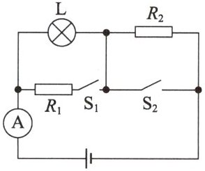 [典例1]如图所示的电路中,灯泡的电阻$R_{L}= 12\ \Omega$,正常发光时的电压为$12\ V$,$R_{2}= 12\ \Omega$。当开关$S_{1}$、$S_{2}$都闭合时,电流表的示数为$1.2\ A$,这时灯泡正常发光。