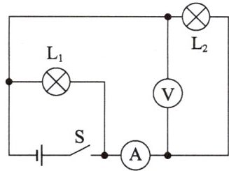 7. 如图所示,开关$S$闭合后,灯泡$L_{1}$、$L_{2}$都发光,两个电表都有示数。工作一段时间后,突然灯泡$L_{2}$熄灭,$L_{1}$仍然发光,两个电表都无示数。该电路可能出现的故障是(