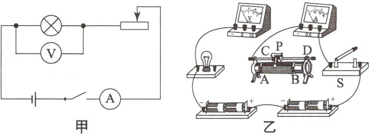 (1) 请用笔画线代替导线,按照图甲所示电路,将图乙的实物电路连接完整,使滑动变阻器的滑片向左移动时小灯泡变暗。