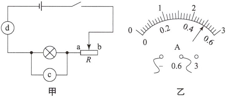 $V$,从图乙中读取电流表的示数是0.5