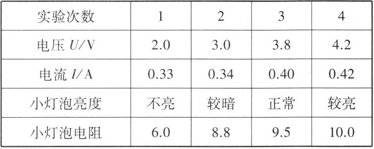 (4) 更换上完全相同的小灯泡,正确连好电路,通过完全正确的操作获得数据如表。