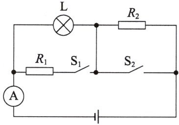 (2)当$S_1$、$S_2$都闭合时,$L$与$R_1$并联,$R_2$未接入电路,电流表测电路中的总电流,