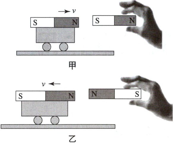 3. 小明用两个条形磁体和一个小车完成了如图甲、乙所示的实验. 通过实验现象可知,磁极间的相互作用规律是什么?