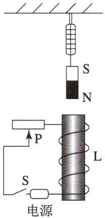 8. 如图所示,闭合开关,将滑动变阻器的滑片P向右移动时,弹簧测力计的示数变小。下列分析正确的是(