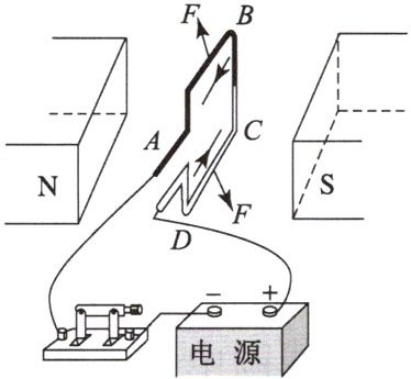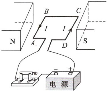 2. 如图所示,通电线圈AB边和CD边的受力方向有什么特点,线圈在磁场中会怎么运动?说明判断理由。