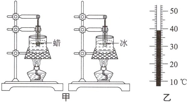 (1) 在加热蜡的过程中,某一时刻温度计的示数如图乙所示,温度是