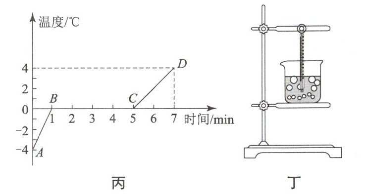 (选填“晶体”或“非晶体”).(2) 向试管中放入碎冰,根据加热过程中记录的数据画出如图丙所示的温度—时间图像.由此得出冰熔化特点:
