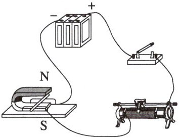 机.断开开关,对调电源正、负两极,重新接入电路,再次闭合开关,观察到金属杆向右(或相反方向)