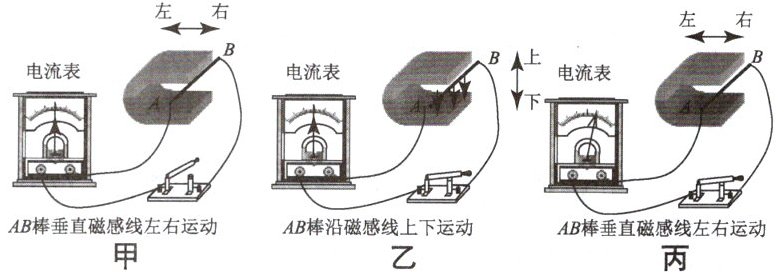(2) 通过比较图甲、乙、丙可知,产生感应电流的一个条件是导体要在磁场中