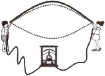 2. 物理老师课堂上组织大家做了有趣的“摇绳发电”实验. 如图所示,他们将多股导线拧成了长约10m的跳绳,将跳绳的两端与固定在地面上的灵敏电流计相连. 当图中摇绳的两位同学按东西方向站位摇绳时,灵敏电流计的指针左右摆动的幅度较大. 本实验的实验原理是