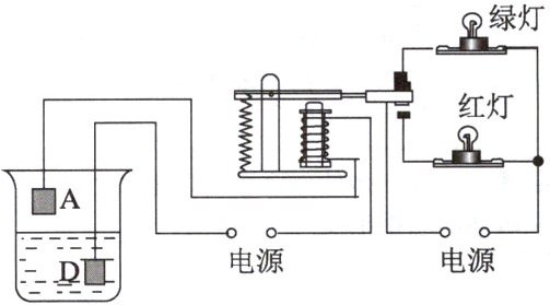 (选填“强”或“弱”).当水位到达金属块A时,红