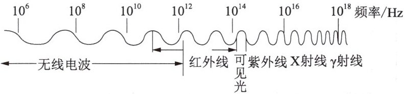 1. 如图是电磁波家族.目前主流的无线WiFi网络常用的频率约是$2.4GHz(2.4×10^9Hz).$根据所给信息,可以推测WiFi信号(