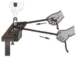 2. 如图所示,把一个底部封闭的薄壁金属管固定在支座上,管中装一些酒精,然后用塞子塞紧管口.把一根橡皮条缠在管子上并迅速来回拉动,很快会观察到塞子被顶出且在管口上方有大量“白气”产生.