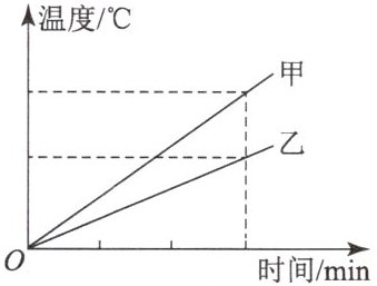 7. 两个相同的容器分别装有质量相同的甲、乙两种液体,用同一热源分别对液体进行加热,液体温度与加热时间的关系如图所示,根据图像可知(