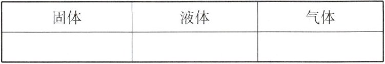 1. 水蒸气、雨、露、霜、雪、雹都是水的化身,是水在不同状态下的存在。请思考它们分别属于固体、液体还是气体,并将它们的名称填入下表。