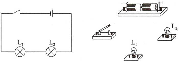 串联电路图:电源正极→开关→灯泡L1→灯泡L2→电源负极(用规范电路符号表示)