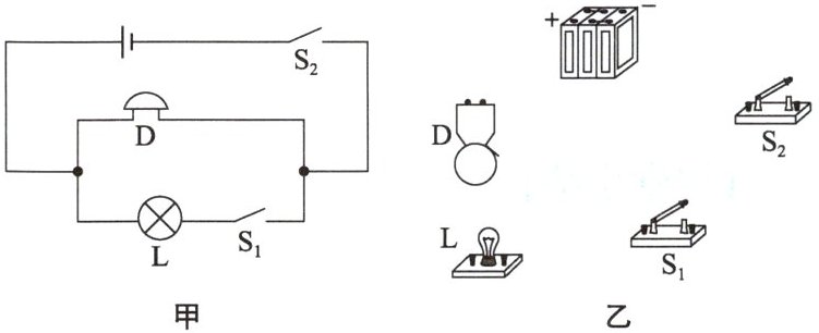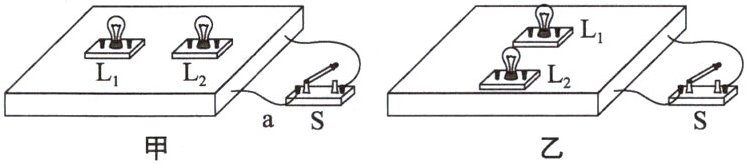 8. 物理课上,老师出示了如图甲、乙所示两个有盖的木盒,电路的部分连接情况隐藏在盒内。当老师闭合开关时,两只灯泡都亮了,断开开关,两只灯泡都熄灭。