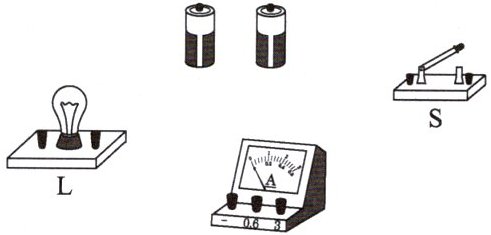 7. 请用笔画线表示导线,把如图所示的元件连成一个完整的电路,用电流表测量通过小灯泡的电流(实际电流约为 $0.3 \, A$).
