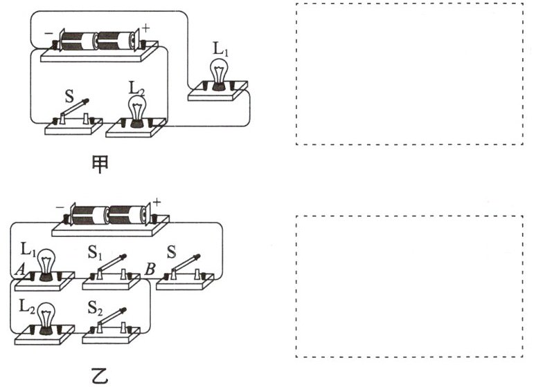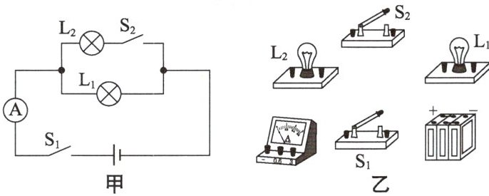 4. 根据图甲所示的电路图,用笔画线代替导线,连接如图乙所示的实物电路(要求导线不能交叉)。