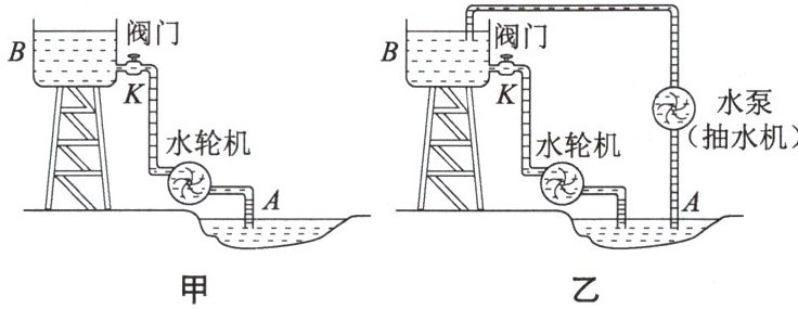 图乙和图甲相比,不同点是图乙中增加了水泵(抽水机)。