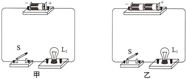 按照图甲、乙连接电路,用电压表测量出小灯泡两端的电压和电源两端的电压。