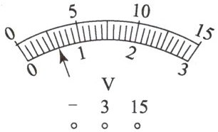 2. 如图所示,当选量程为0~3V时,电压表的读数为