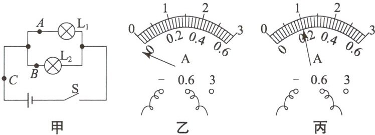 (2)小军在测量 A 点的电流时,发现电流表的指针偏转如图乙所示,原因是