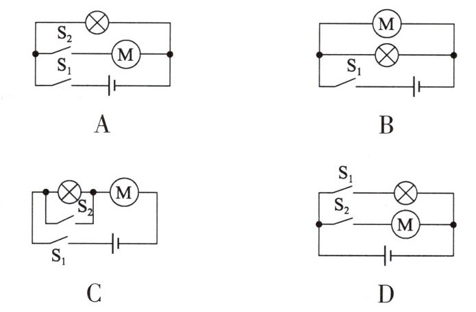 [典例4]一般家庭卫生间都安装有照明灯和换气扇,使用时有时需要它们各自独立工作,有时又需要它们同时工作。下列电路图中,符合上述要求的是(
