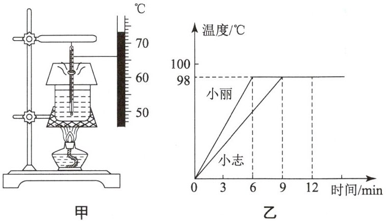 小志和小丽分别利用如图甲所示的装置探究“水沸腾时温度变化的特点”,根据实验数据绘制出了如图乙所示的图像。