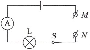 在如图所示的电路中,先后将铜导线、镍铬合金丝(或铁丝)分别接入电路M、N之间,观察比较电流表的示数变化和小灯泡的亮度变化。