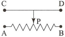 [典例] 如图是滑动变阻器的原理示意图,其中 $ A $、$ B $ 是连接电阻丝的两个接线柱,$ C $、$ D $ 是连接金属杆的两个接线柱,$ P $ 是滑片。