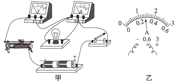7. 图甲是一实验小组在测量小灯泡的电阻实验中连接的一个实物图,所用的小灯泡标有“$ 2.5 $V”字样.