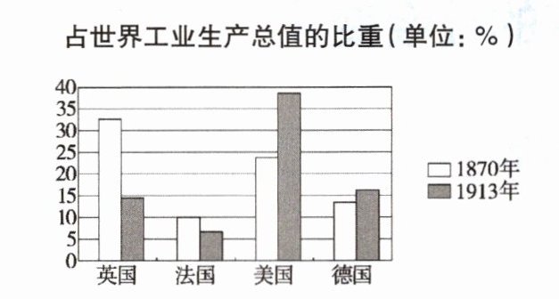 1870年与1913年英、法、美、德工业生产总值占世界工业生产总值的比重(单位:%)