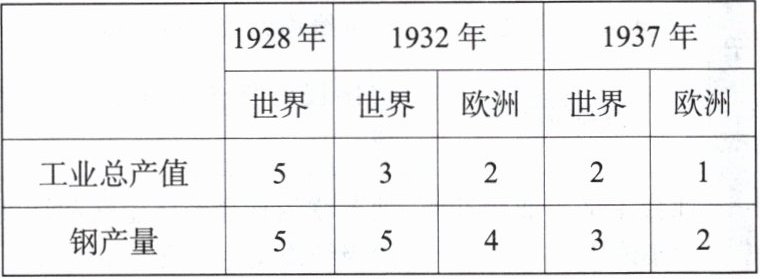 3. 下表表示1928—1937年苏联工业总产值及钢产量在欧洲和世界所占的地位,其地位前后发生变化的主要原因是(
