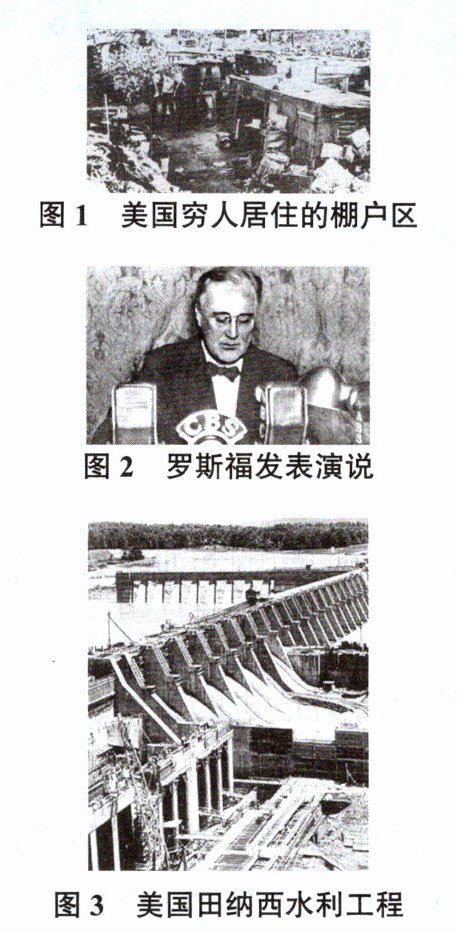 经济大危机使美国人民生活质量严重下降,引发社会危机;罗斯福上台后实行新政,采取一系列措施,其中兴办公共工程,推行“以工代赈”,为失业者提供了就业机会。