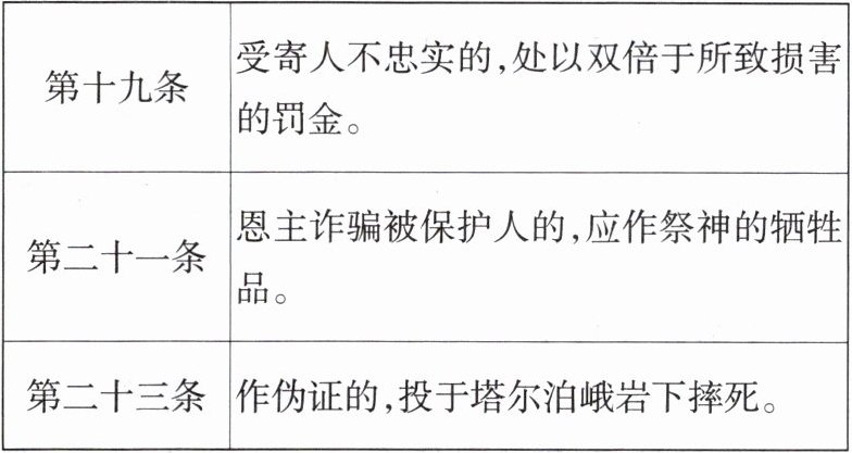 2. 下表为《十二铜表法》中第八表的部分规定。据此可知,《十二铜表法》(