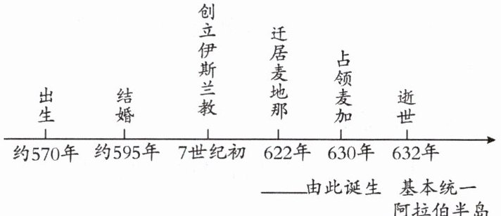 2. 下图是穆罕默德的生平事迹时间轴。622年下的横线处应填(