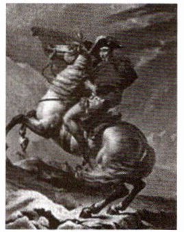 《跨越阿尔卑斯山圣伯纳隘口的拿破仑》由拿破仑的御用画师大卫于 1800—1801 年创作。画中的拿破仑骑在马背上,意气风发,志在必得,他的手指向高高的山峰。画中的马昂首阔步,非常健壮。