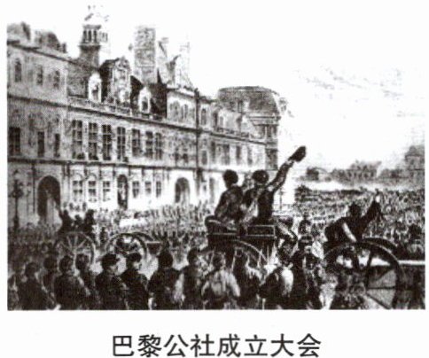 (2)观察材料二中的巴黎公社成立大会图片并结合所学知识,指出巴黎公社的性质、结局。