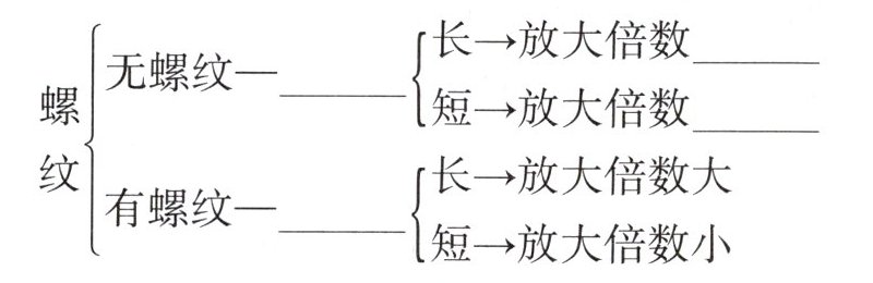 (2) 目镜和物镜的结构与放大倍数之间的关系