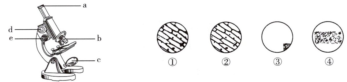 ]______物镜______,从视野①变为视野②,应调节显微镜的______e