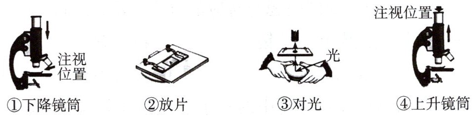 (1) 下图是显微镜的操作步骤,正确的顺序是