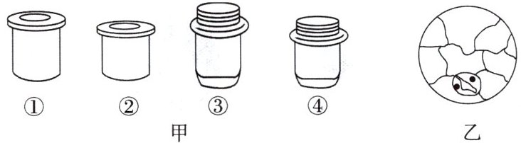 1. 下图甲中的目镜标有 5×和 10×字样,物镜标有 10×和 40×字样。图乙是在图甲中选用的一组能放大 50 倍的镜头组合所观察到的保卫细胞图像,欲将图乙视野中处于下方的保卫细胞移至视野中央放大 200 倍观察,下列操作错误的是(