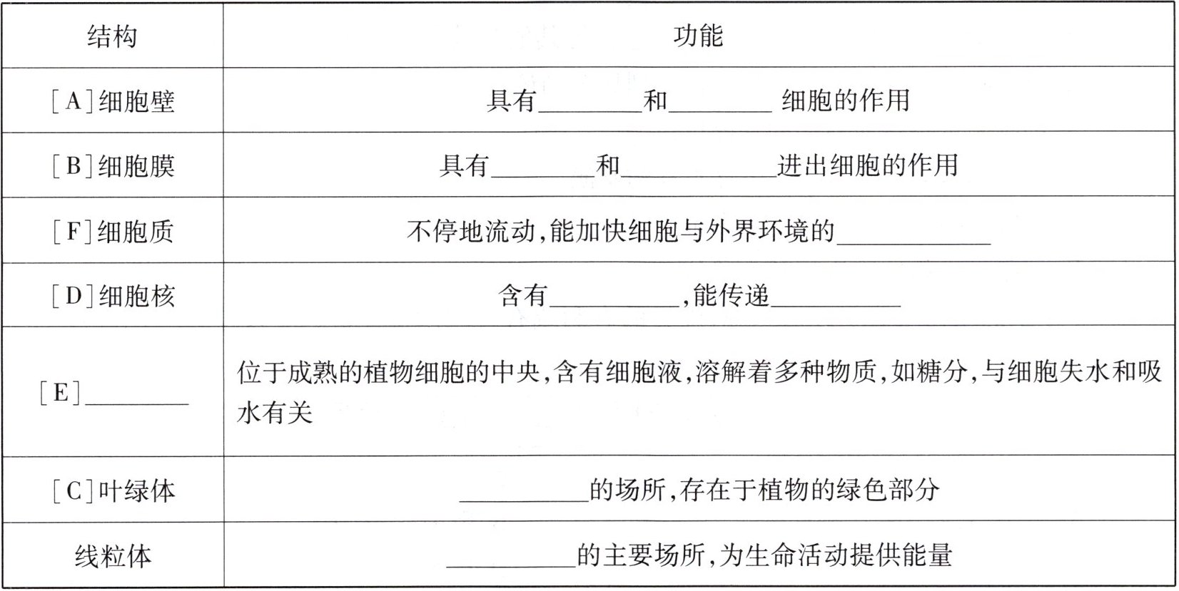 (1)保护 支持 保护 控制物质 物质交换 遗传物质 遗传信息 液泡 光合作用 呼吸作用