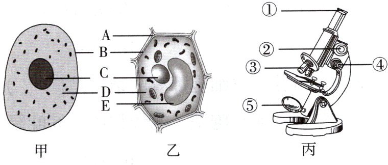 10. 下图中甲、乙是不同生物细胞的结构示意图,丙是显微镜的结构示意图。请据图回答下列问题。