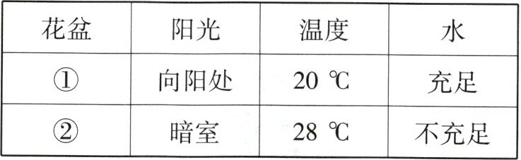 11. 为了探究光照对绿豆发芽的影响,某同学设计了如下实验:在两个同样的花盆中种植绿豆,并对阳光、温度、水加以控制(如表所示)。下列对他实验设计所提的意见中,正确的是(