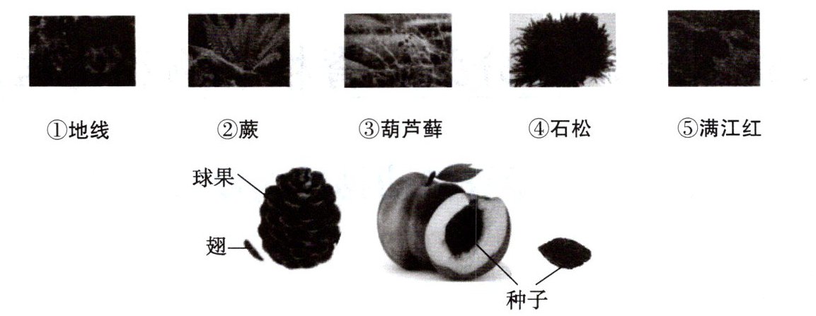 (3)松树上的球果和桃树果实里面都有种子,所以说松树和桃树都属于
