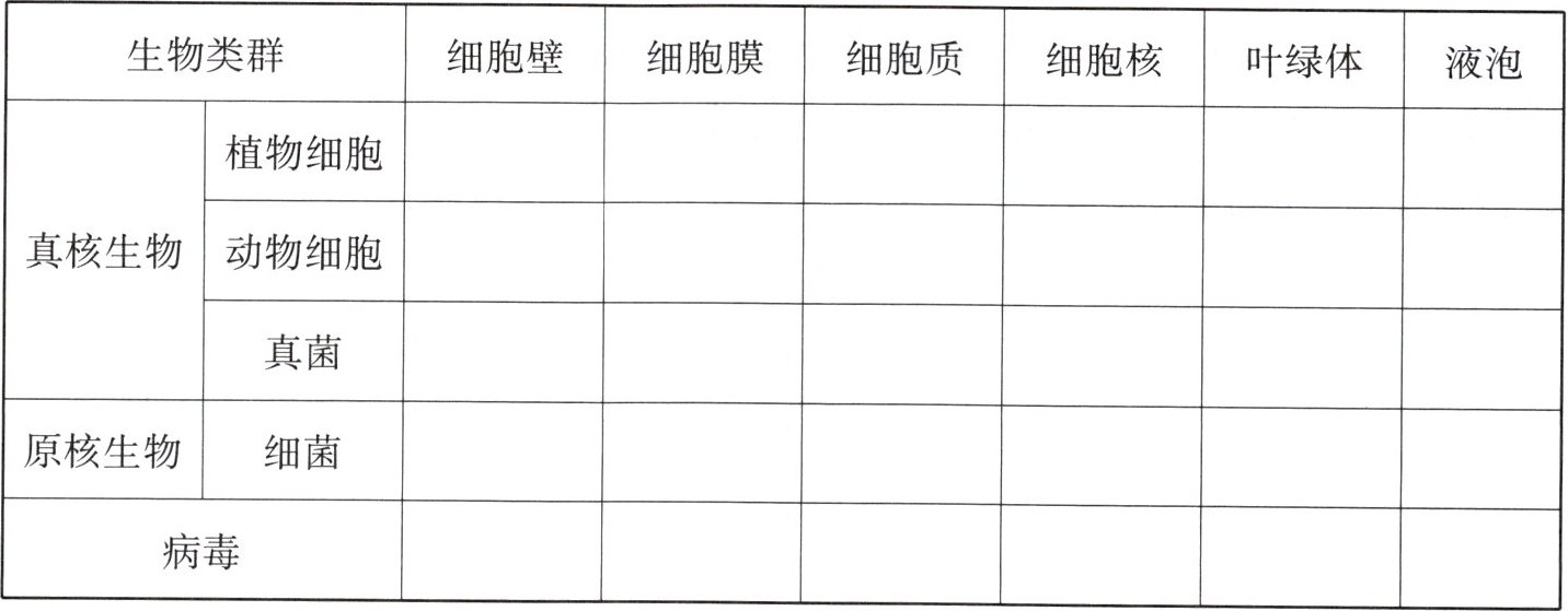 5.有 有 有 有 有 有 无 有 有 有 无 无 有 有 有 有 无 个别有,如酵母菌 有 有 有 没有成形的细胞核 无 无 无 无 无 无 无 无