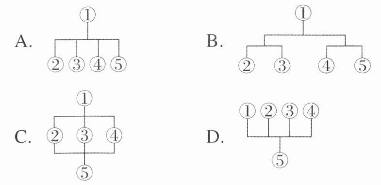 Ⅱ. 1. A 2. B 3. D 4. C 5. A