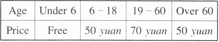 3. 46 - year - old Mike wants to watch the performance with his 5 - year - old daughter and 15 - year - old son, how much should he pay?